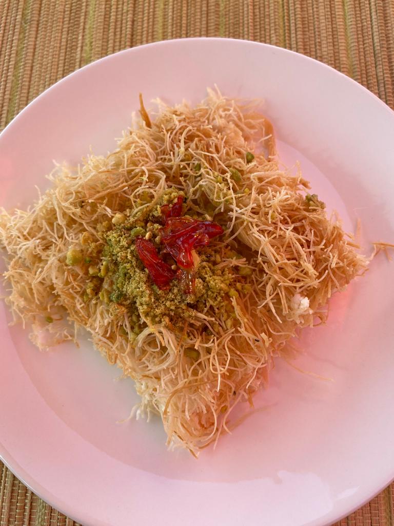 esmalieh-birds nest, ashta, rose water syrup, pistachio